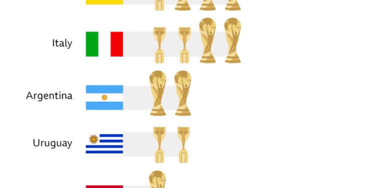 Of the 8 quarter finalists in Russia, 4 have won the cup before, and Brazil is the only country that has participated in every tournament, winning it a record five times.